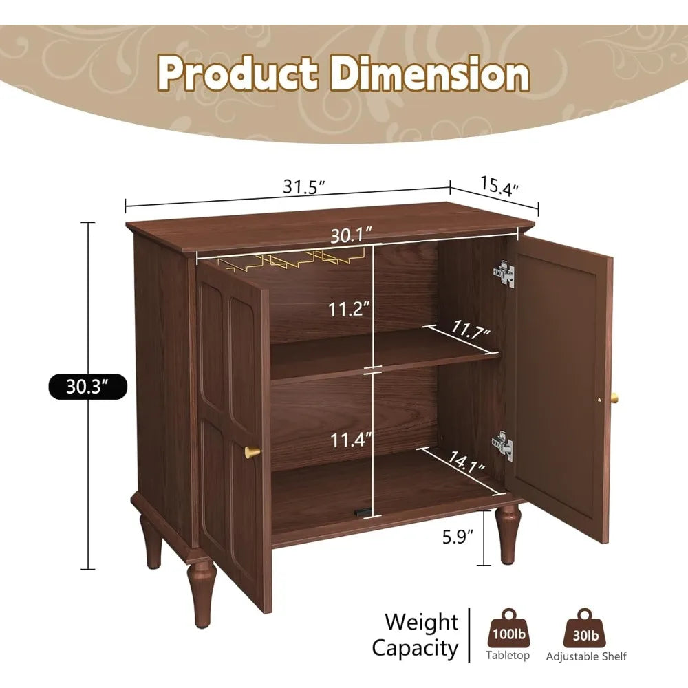 Its spacious dimensions (31.49" wide, 15.43" deep, and 30.31" high) make it versatile enough for various uses, whether in the dining room, living room, hallway, or even as a stylish home bar. The two doors open to reveal adjustable and removable shelves that you can configure as one or two tiers, accommodating items of different sizes and shapes. Plus, a removable wine glass rack offers dedicated space for your stemware, keeping your tableware organized and easy to access.