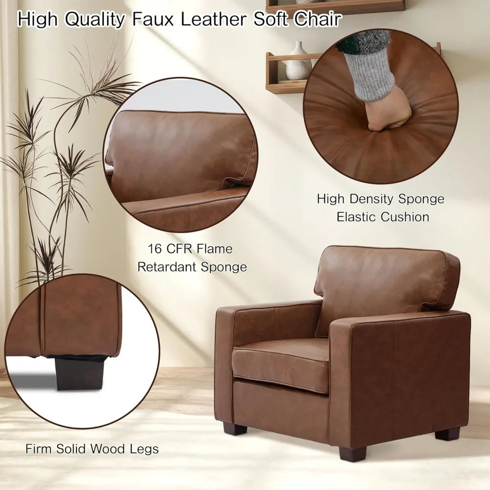 Crafted with a solid wood frame, this sofa provides a sturdy foundation that supports everyday use. The high-density foam cushions combined with built-in springs create a seating experience that’s both comfortable and resilient, maintaining its shape and support over time. Wrapped in smooth PU faux leather, the surface is not only soft to the touch but also waterproof and easy to clean—ideal for busy households or commercial spaces where spills and messes happen.