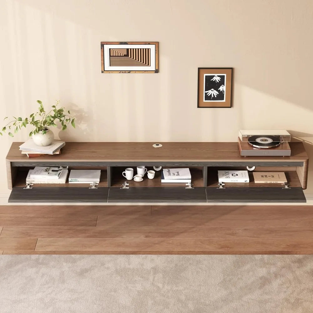 If you’re navigating the challenges of limited space—whether in an apartment, a cozy bedroom, or a minimalist living room—this floating design is made for you. By mounting the console on your wall, you free up valuable floor space, making your room feel more open and airy. It’s the smart way to furnish your home without overcrowding it.