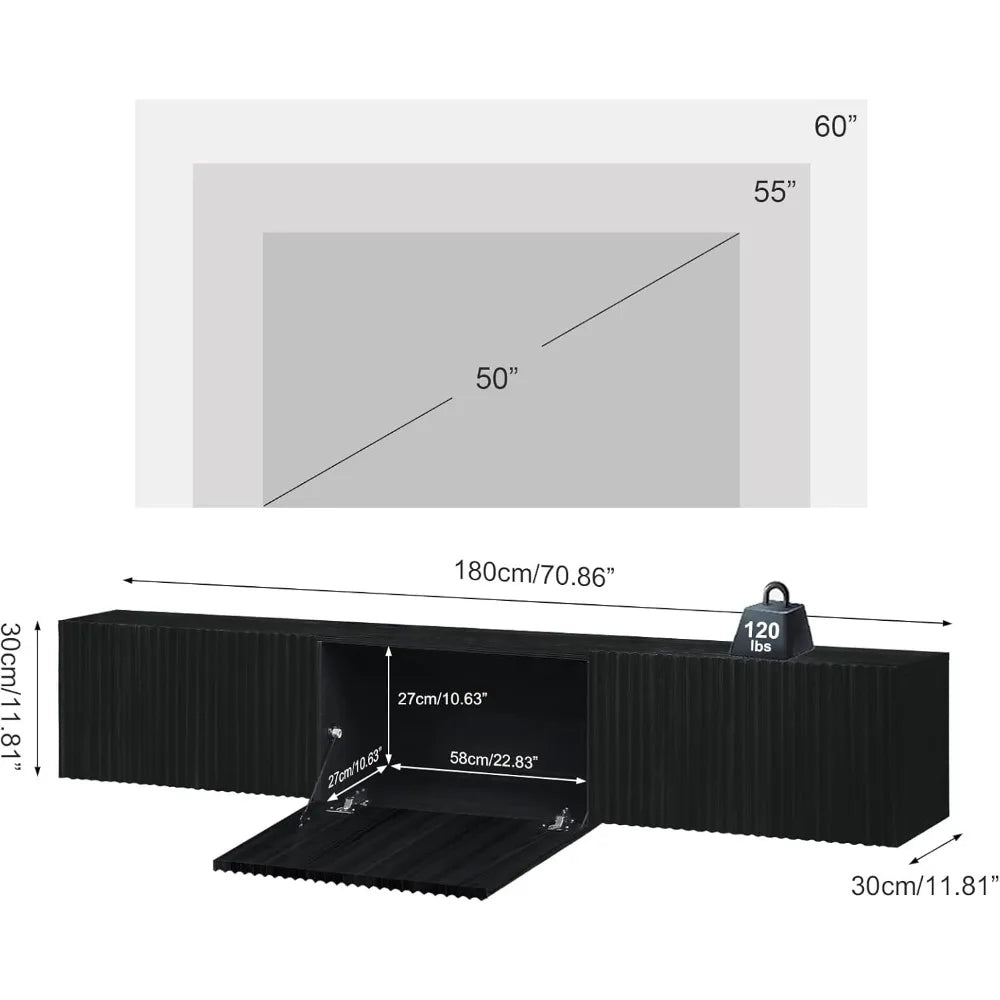 The dimensions—70.86 inches in length, 11.81 inches in width, and 11.81 inches in height—make it a perfect fit for medium to large rooms, offering enough surface area for your TV and storage without dominating your space.