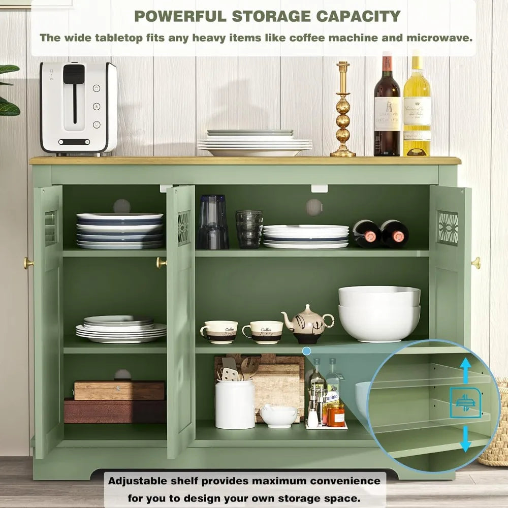 Meet the Modern Buffet Server with 3 Doors and 4 Adjustable Shelves — a smart and stylish storage solution that brings real quality at a price that makes sense. Designed to fit seamlessly into your dining room, living area, or kitchen, this 45-inch buffet server combines thoughtful functionality with contemporary style, all wrapped in a refreshing pesto green finish that adds a vibrant touch to your space.