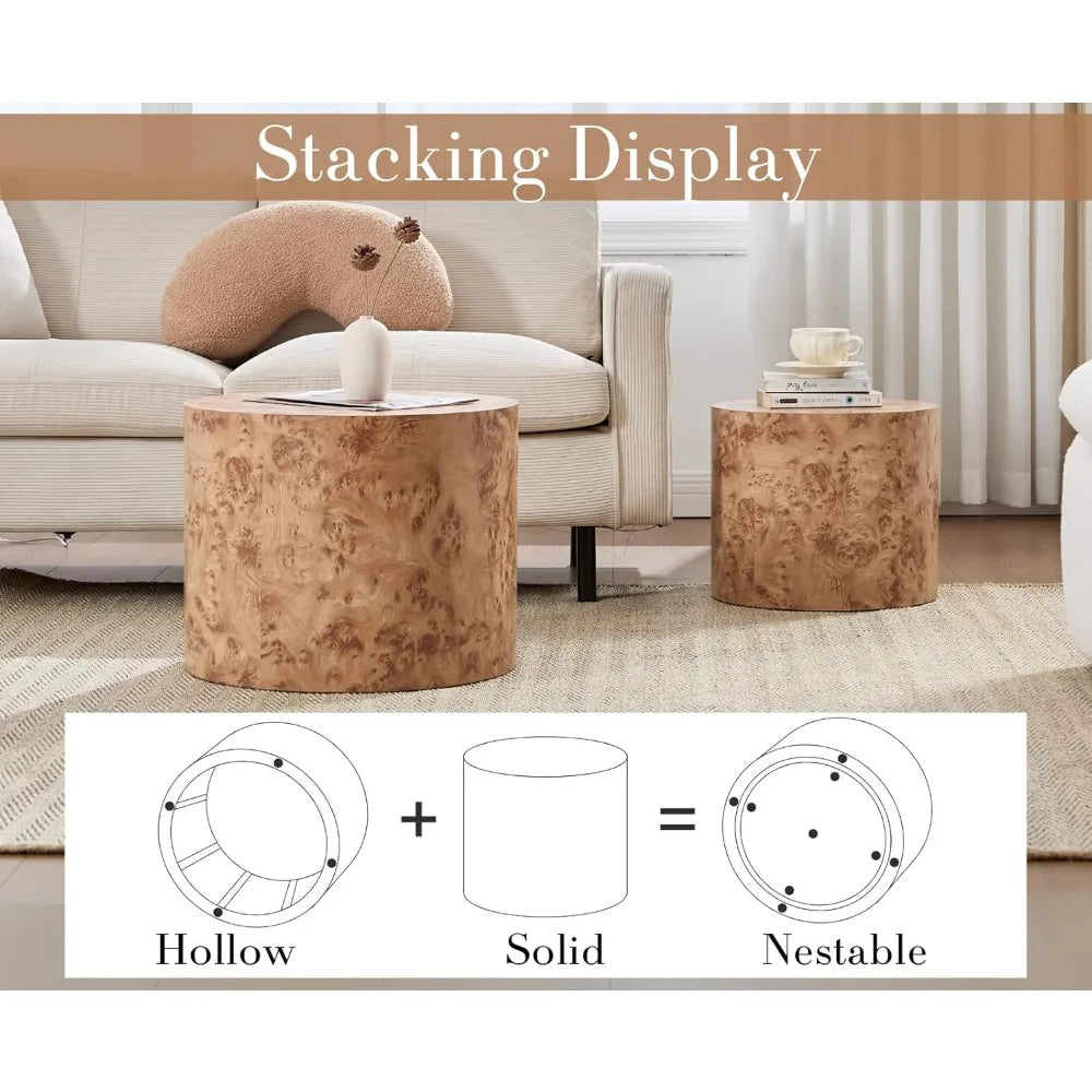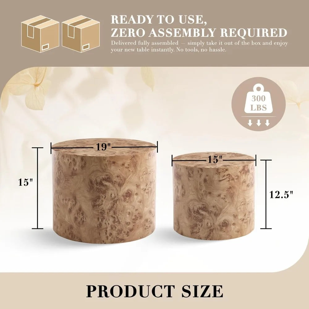 Constructed from durable rubber wood and finished with a distinctive burl texture, the tables offer a natural, warm look that complements a wide range of interior styles. From modern minimalism to farmhouse charm, industrial edge, or even luxury décor, their rounded shapes and rich burl finish make them a versatile addition to your home.