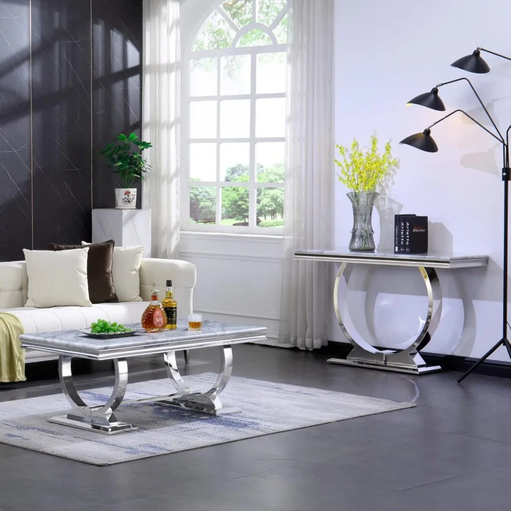 Crafted with a strong stainless steel U-shaped base, this console table stands firm and stable, ready for everyday use in busy homes or stylish commercial spaces. The tabletop features engineered wood with a premium textured veneer that’s both attractive and practical—waterproof and easy to clean, so spills and dust won’t be a worry. This thoughtful combination of materials ensures you get real quality that lasts, without the premium price tag.