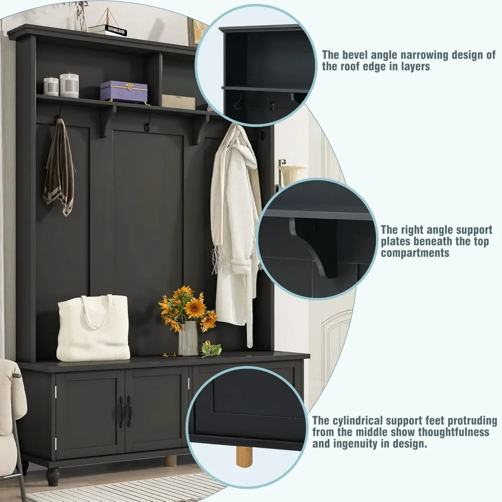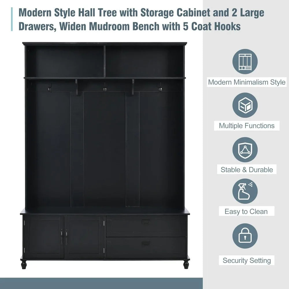Meet the Modern Hall Tree Storage Cabinet with Wide Mudroom Bench and 5 Coat Hooks by Harper & Bright Designs—a smart and stylish solution that brings order and function to your entryway without stretching your budget. Designed to combine practicality with lasting quality, this piece offers real value, making it easy to furnish your home with confidence.