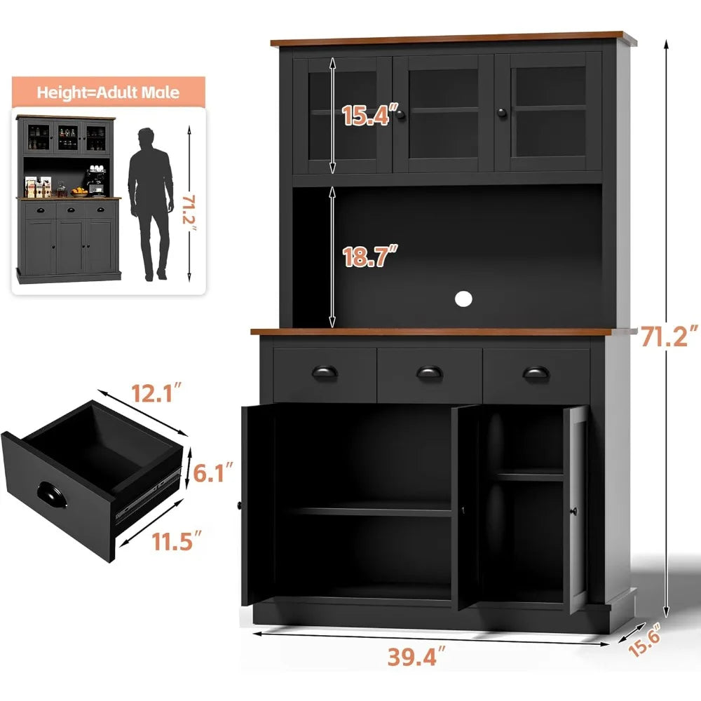 Three upper glass doors: Perfect for displaying your favorite dishes, glassware, or decorative items while keeping them dust-free.