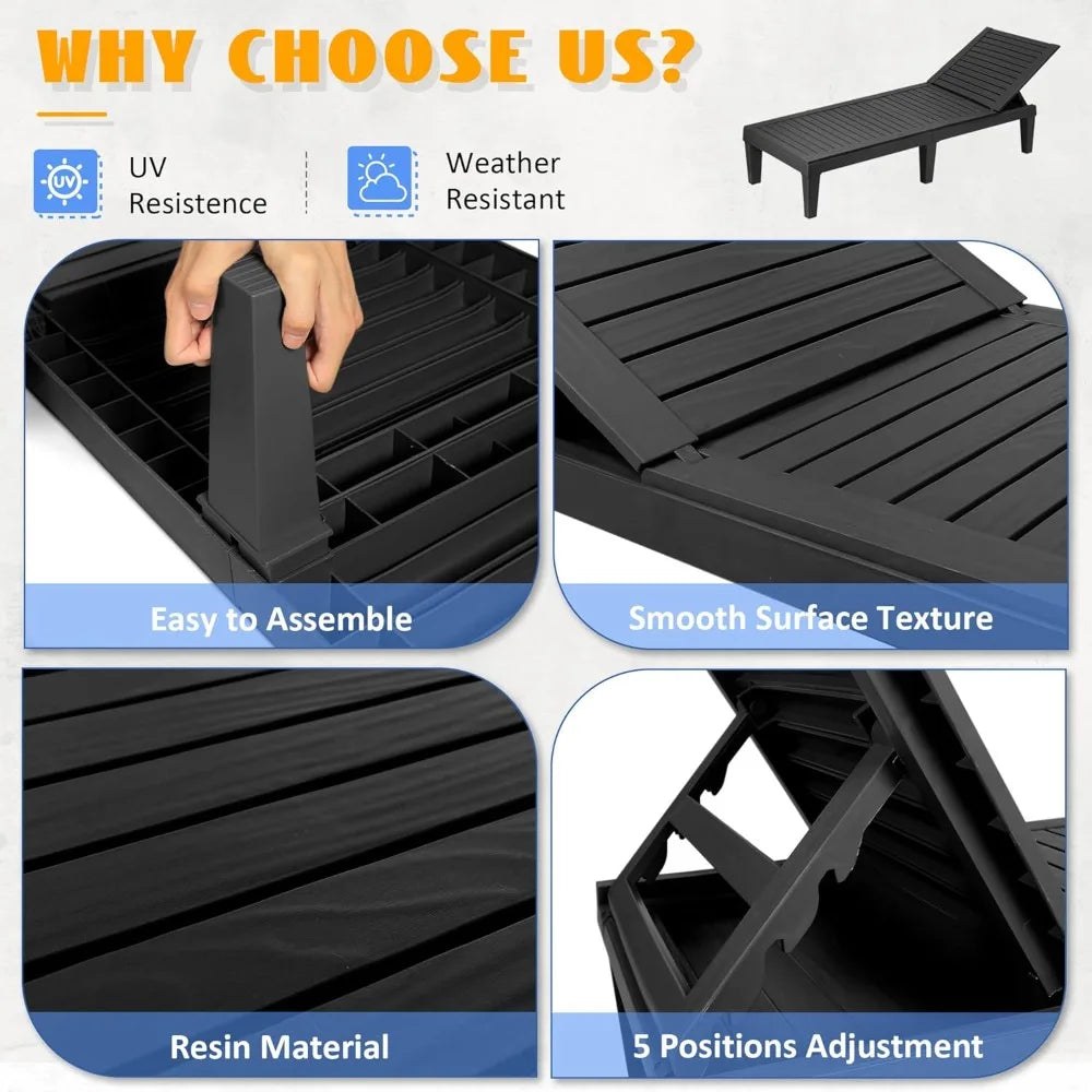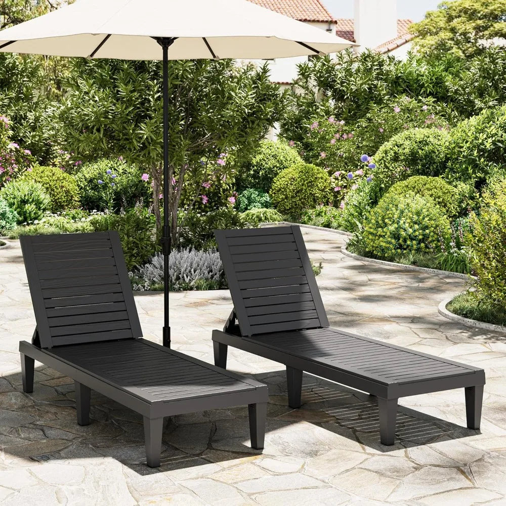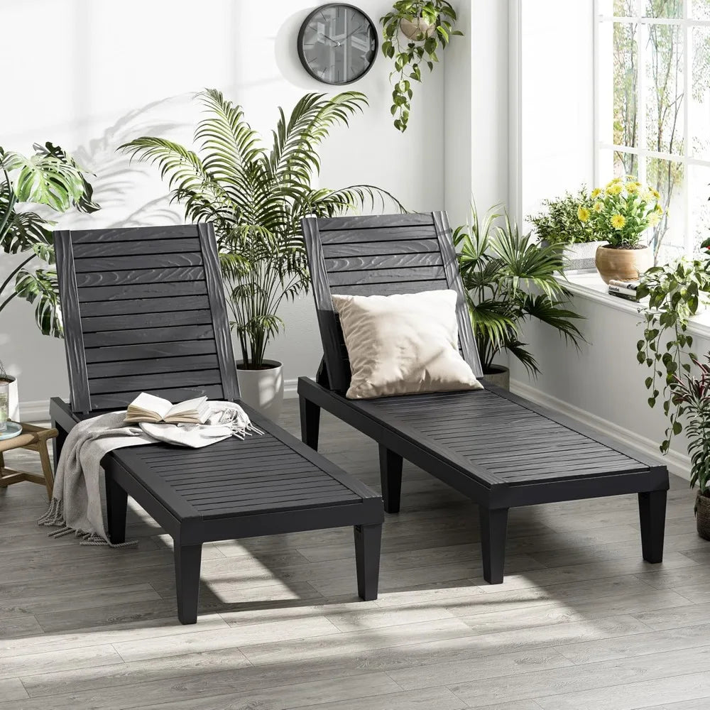 Designed with practical outdoor living in mind, these chaise lounges bring both comfort and reliability. Their weather-resistant construction means they can handle rain or shine without worry, so you get year-round use. And thanks to the thoughtful design, including the wood grain texture and adjustable backrest, you get a smart, stylish addition to your outdoor furniture that won’t break the bank.