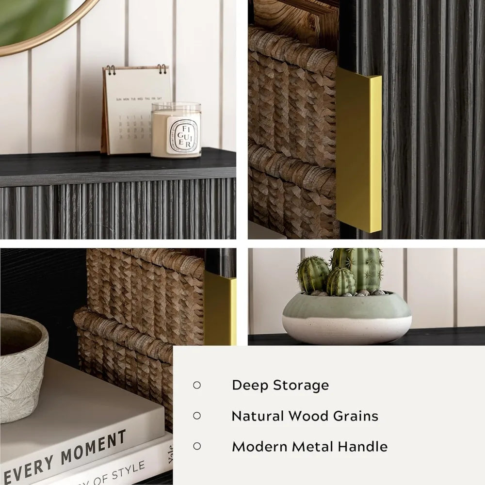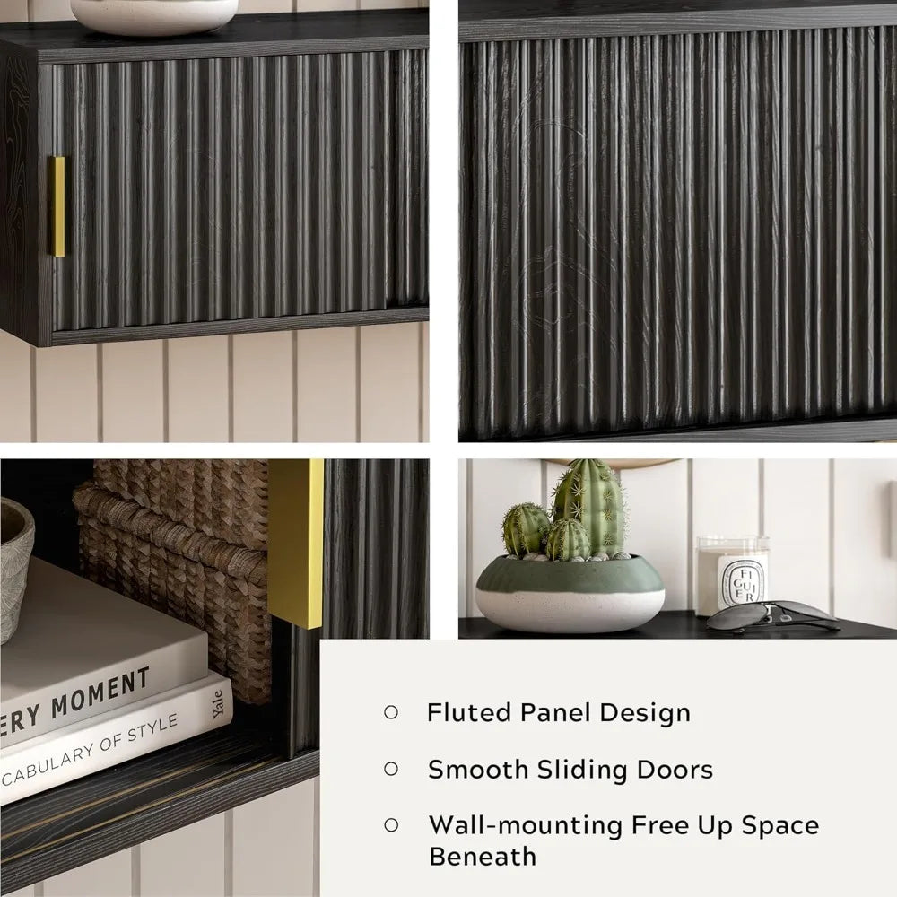 Crafted from high-quality particle board with a durable laminate finish, these stands offer a beautiful wood grain appearance that fits seamlessly into contemporary spaces. The black rectangular units feature elegant fluted and sliding doors, giving a soft yet sophisticated look that complements your décor. Thanks to the laminate surface, the shelves are easy to clean—just a simple wipe with a dry cloth keeps them looking fresh and new.