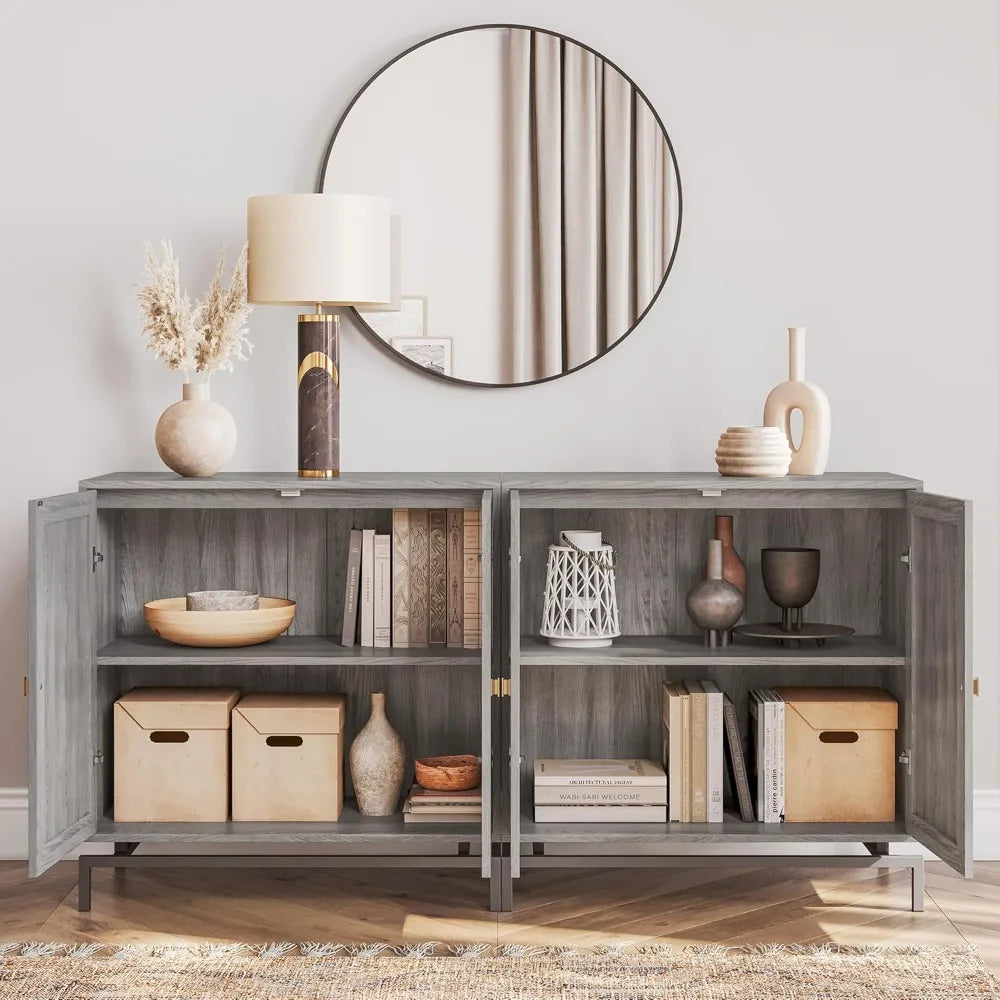 Crafted with engineered wood and featuring doors woven with PVC rattan, each sideboard blends traditional elegance with a relaxed, natural vibe. The grey finish complements modern decor seamlessly, making these cabinets versatile enough to fit in any room. Whether you’re organizing files, books, decorative items, or kitchen essentials, these sideboards offer a practical way to keep your space tidy and inviting.