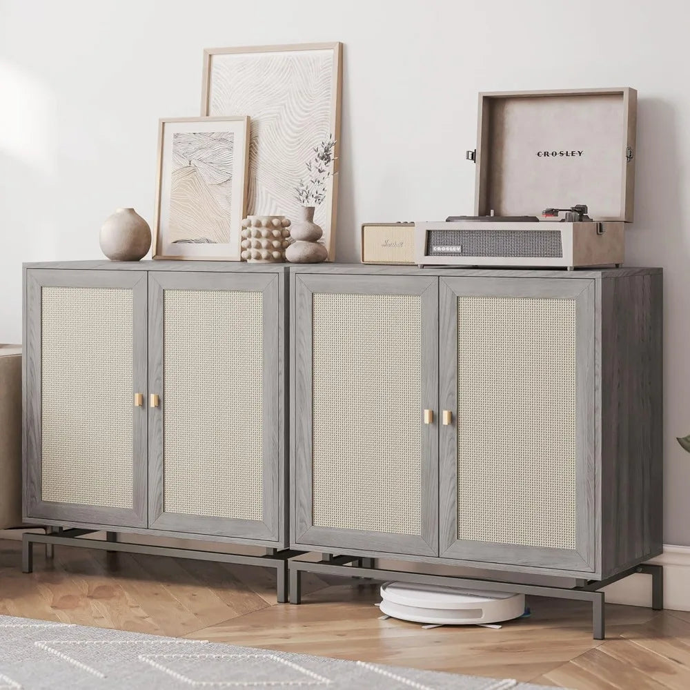 Spacious Storage: Each cabinet offers a roomy interior behind four rattan-adorned doors, keeping your belongings both accessible and out of sight.