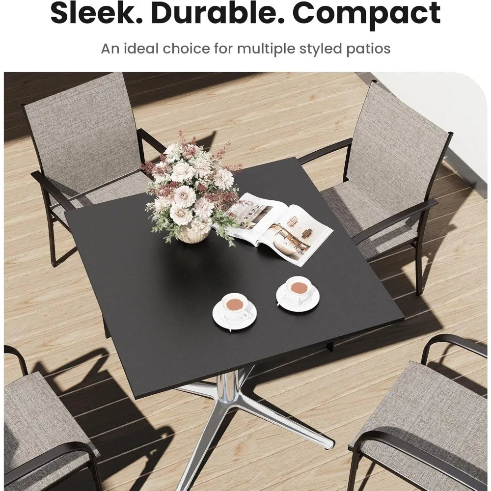 Modern Style: Sleek black square tabletop adds a contemporary touch that enhances your outdoor aesthetic.