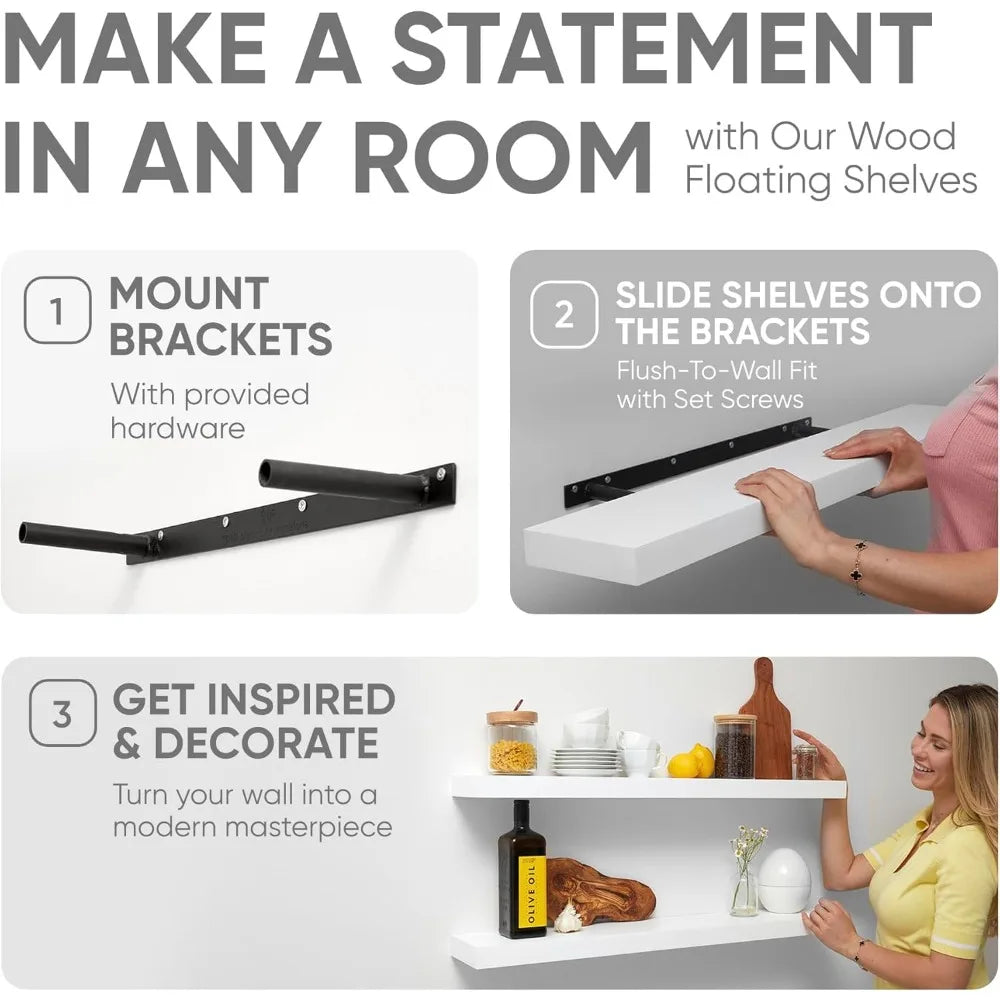 Meet the Premium White 42-Inch Wall-Mounted Solid Wood Floating Shelf from FurnitureZ: all the style and durability you want, at a price that fits your budget. This shelf combines timeless design with practical strength, making it an ideal choice for anyone looking to enhance their home without overspending.