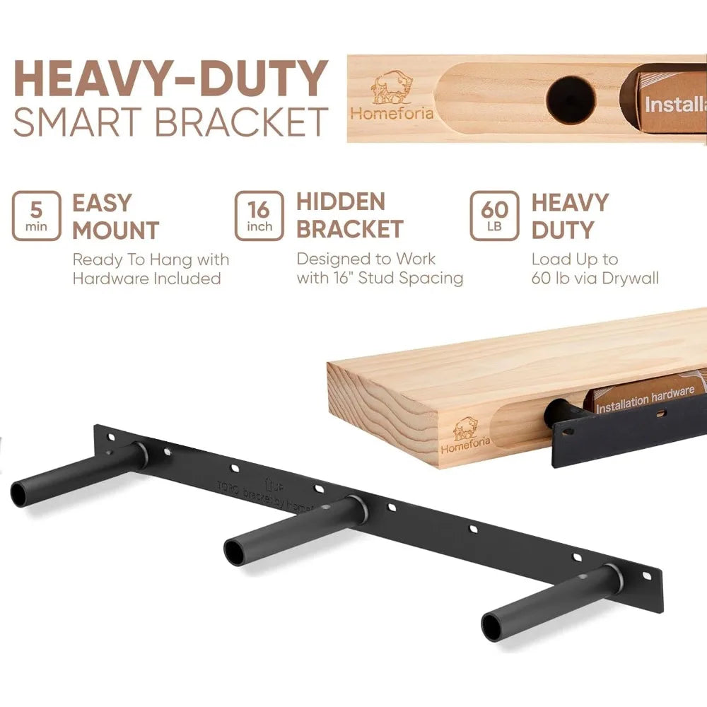 Durability is at the core of this floating shelf’s design. Thanks to its heavy-duty metal mounting bracket and sturdy wood construction, it supports up to 50 pounds without sagging or warping. This makes it perfect for holding books, decorative items, kitchen essentials, or bathroom necessities safely and securely.