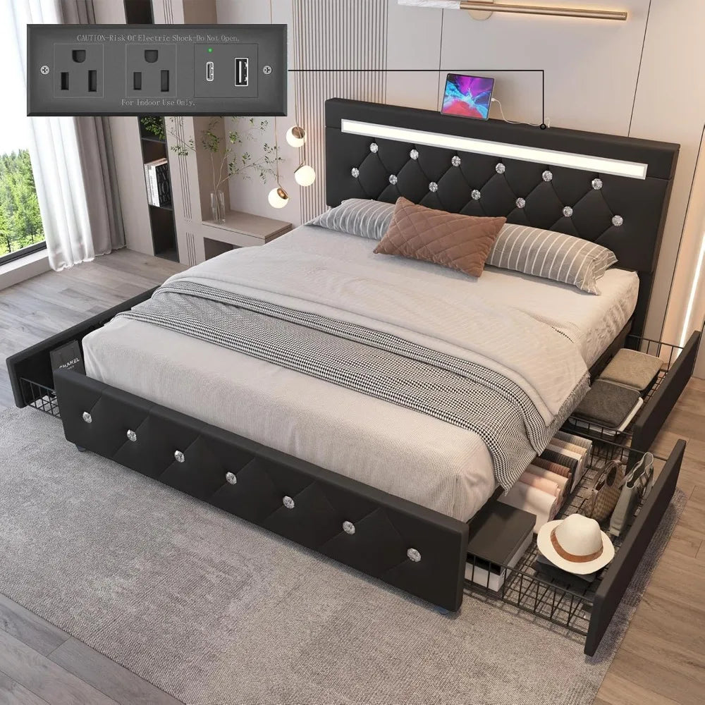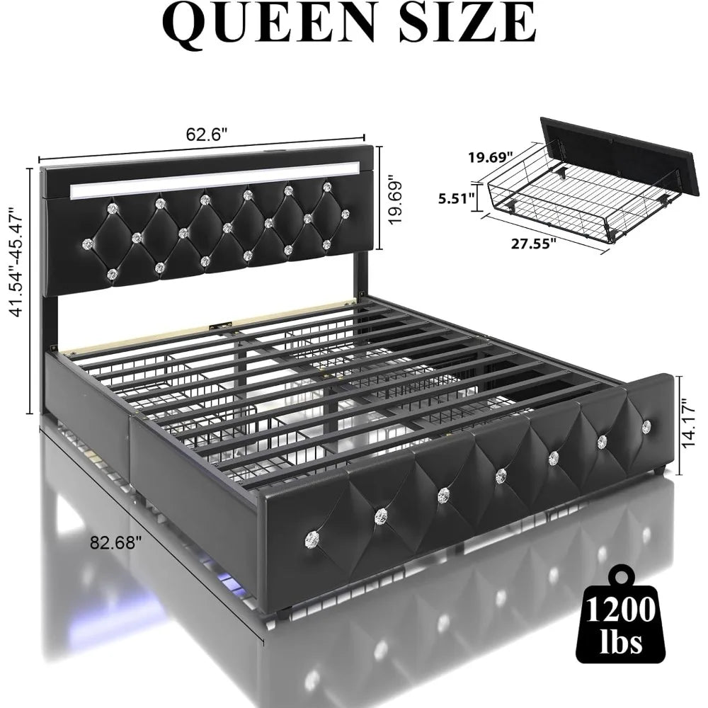 FurnitureZ l Queen-Sized Storage Bed Frame for Bedroom