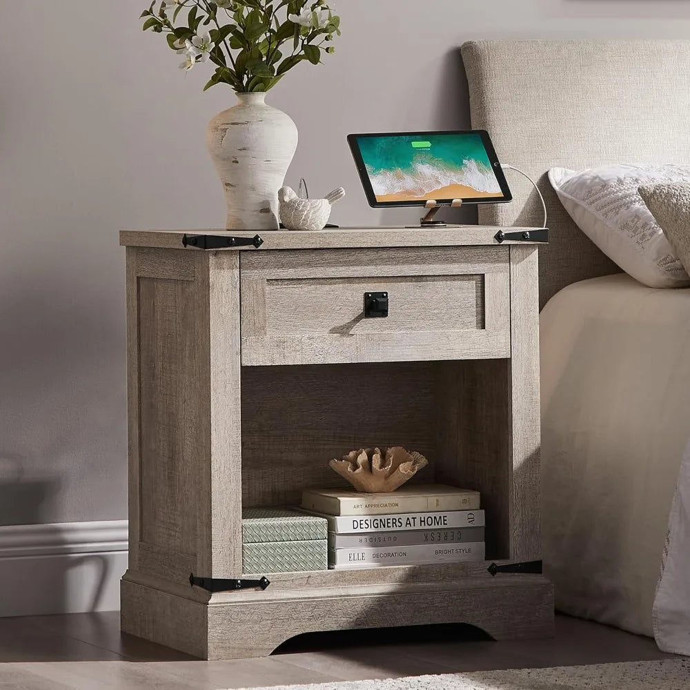 Meet the Rustic Farmhouse Style Nightstand with Charging Station and Storage: a smart blend of timeless design and practical features at a price that makes sense for your home. This large end table offers both style and everyday functionality, helping you keep your bedside organized without compromising on quality or aesthetics.