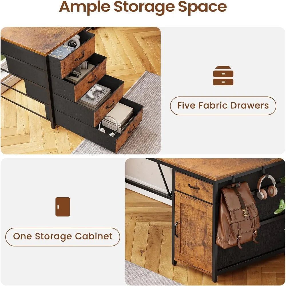 - Generous Storage: With five breathable fabric drawers and a large storage cabinet, you can keep your office supplies, files, and books neatly organized and within easy reach. The lightweight fabric drawers are easy to assemble and slide smoothly, offering practical under-desk storage that keeps your workspace clutter-free.