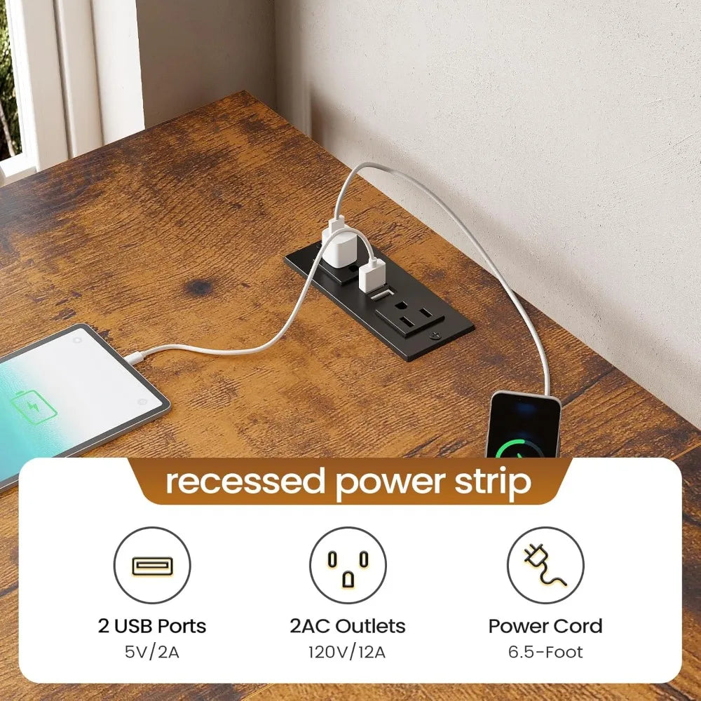 - Power Outlet & USB Ports: Integrated into the desk is a convenient charging station featuring two power outlets and two USB ports. This means you can simultaneously power multiple devices—phones, tablets, speakers—without needing extra adapters or messy cords.
