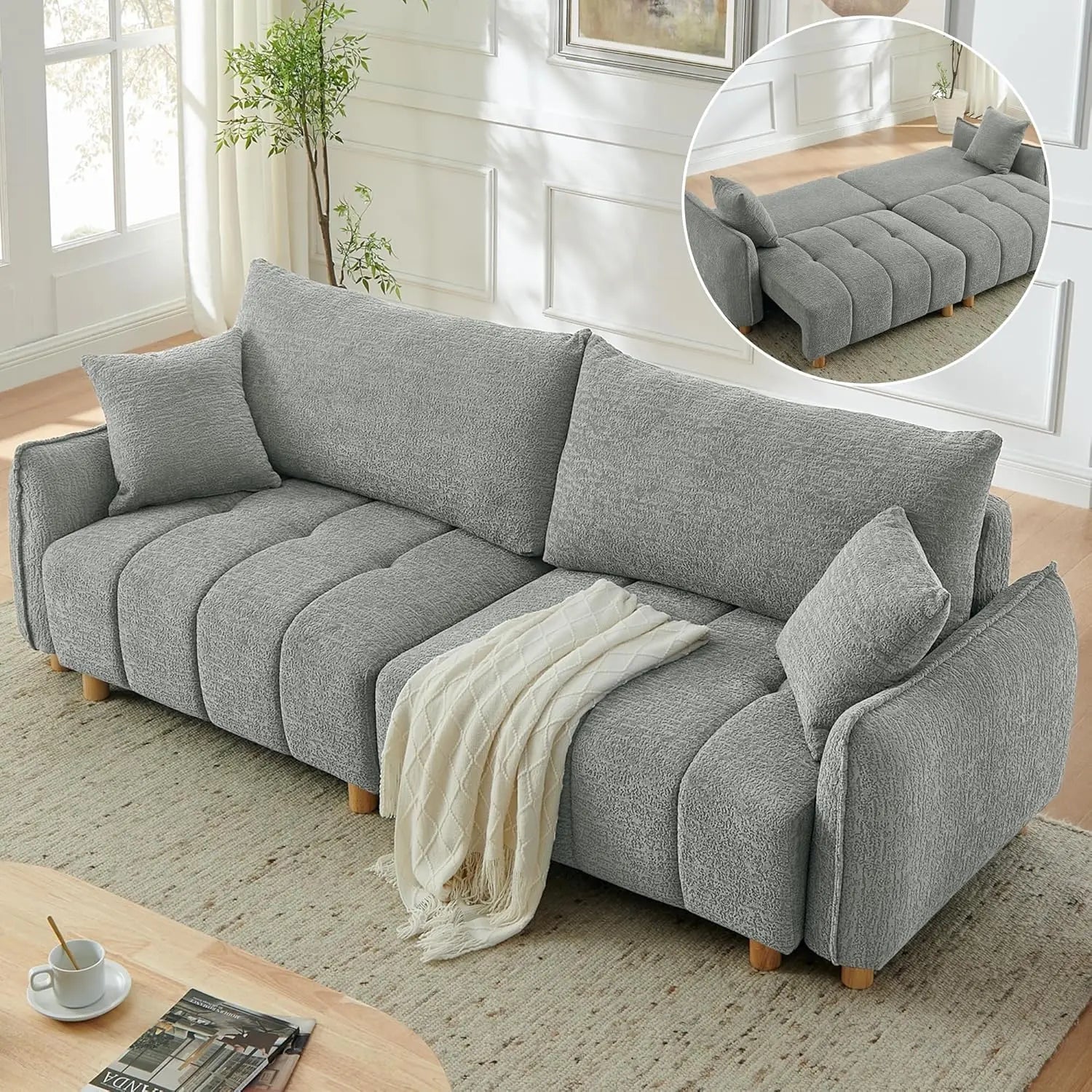 The seat cushions are made with a high-density sponge combined with pocket springs, providing firm yet comfortable support that retains its shape. This thoughtful combination helps you stay comfortable during long sitting sessions and guarantees restful sleep when converted into a bed. Plus, the breathable chenille fabric covering is soft to the touch and designed to resist pilling, so it stays looking fresh and inviting even after regular use.