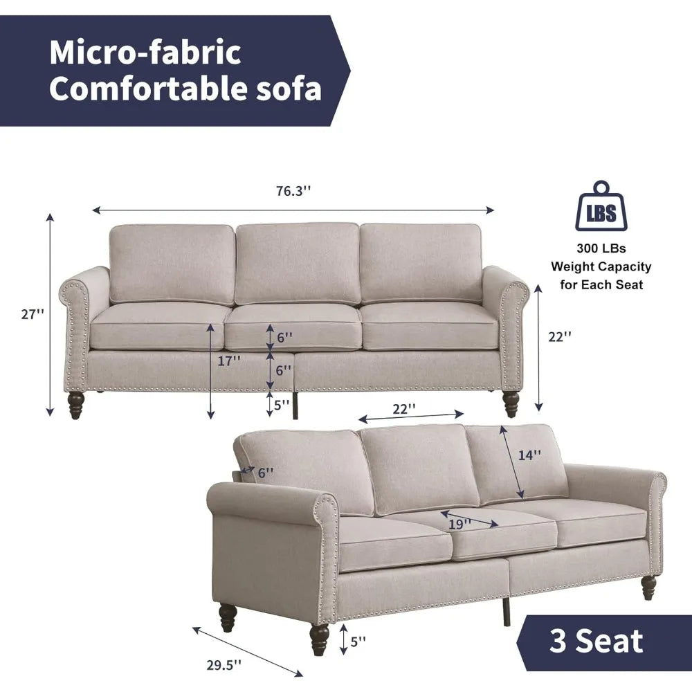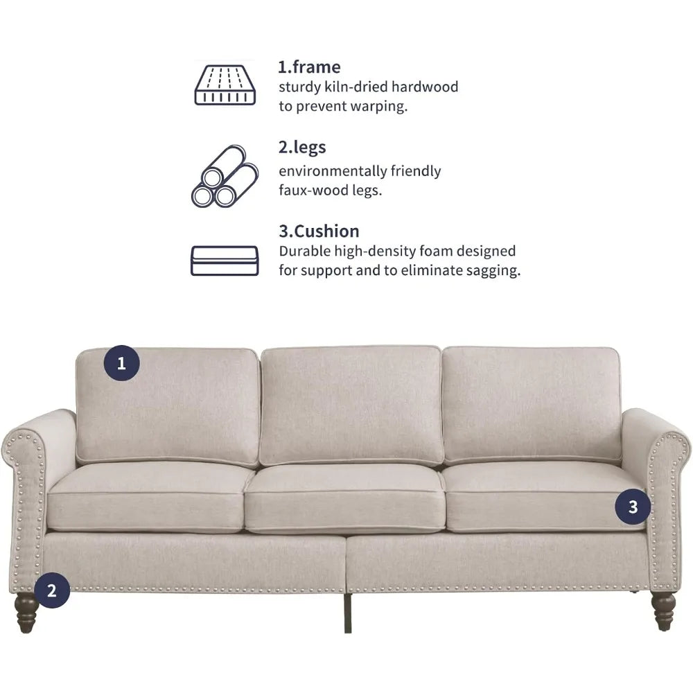 FurnitureZ l Sofa Couch, 3-Seat Couches for Living Room