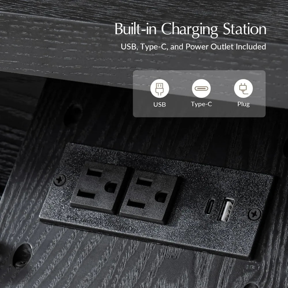Smart Charging Hub: Dual USB, Type-C ports, and outlets keep devices powered and organized without visible cords.
