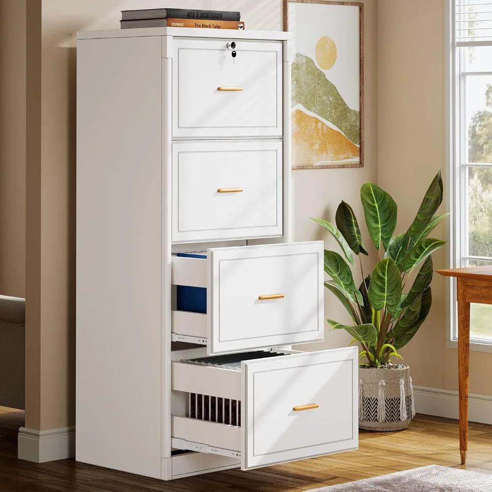 Meet the Tribesigns 4 Drawer File Cabinet with Lock and Key for Home Office: all the style and durability you want, at a price you'll love. This cabinet combines smart design and quality materials to offer a practical, secure solution for organizing your important documents without overwhelming your workspace.