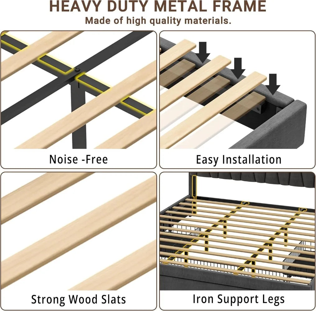 - Quick Installation and Noise-Free Experience: Thanks to a hook and loop fastener system for the slats and EVA silent strips between the bed and frame, assembly is straightforward and the bed stays quiet and secure—no box spring needed. It works well with mattresses from 8" to 12" thick.