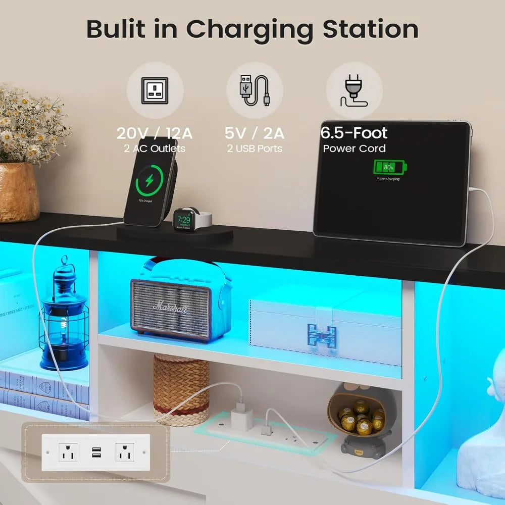 - Built-in Charging Station: Stay powered up with a convenient charging hub integrated right into the headboard. Featuring 1 TYPE-C port, 1 USB port, and 2 AC sockets, you can charge up to four devices simultaneously—ideal for phones, tablets, or laptops.