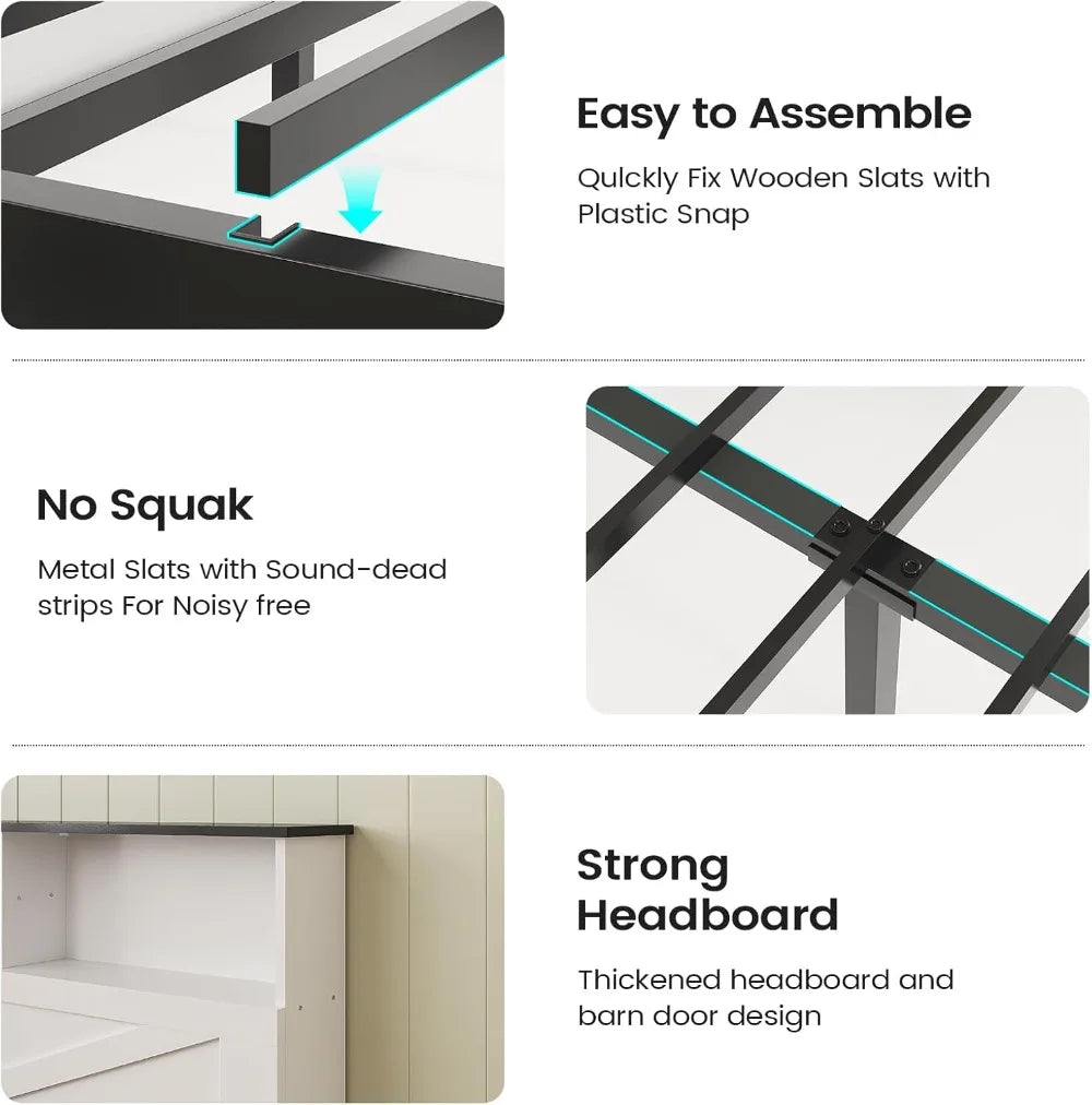 - Smart Storage Solutions: The farmhouse-style headboard includes open shelves and a hidden storage compartment, perfect for stashing pillows, blankets, or everyday essentials. No more cluttered nightstands—everything you need is within arm’s reach.