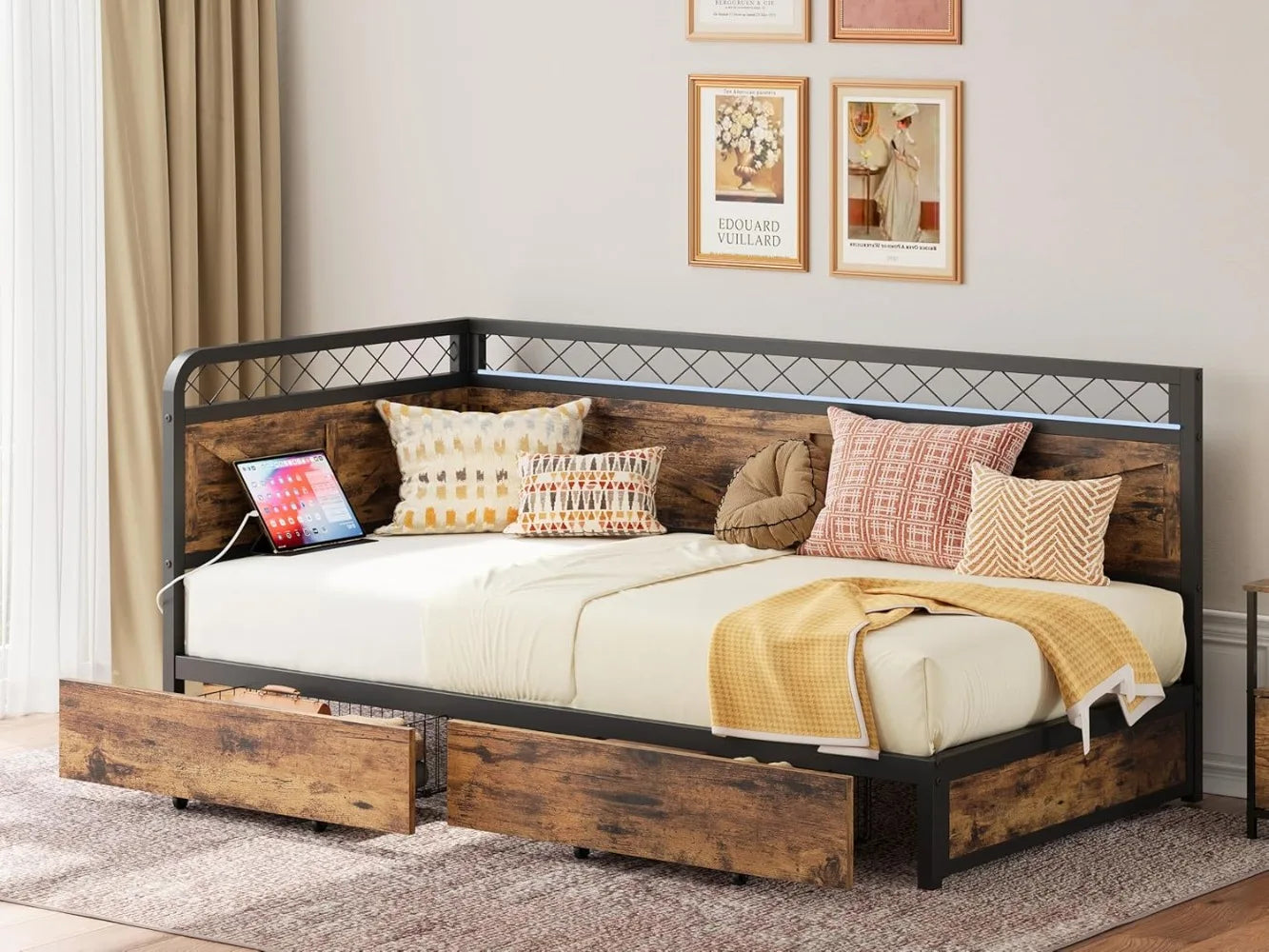 Meet the FurnitureZ Twin Daybed with Storage Drawers: a smart way to combine style, comfort, and practical living—all at a price that makes sense. This industrial brown corner bed frame is thoughtfully designed to bring both functionality and modern flair to your living room or bedroom, making it an excellent solution for anyone looking to maximize space without compromising on quality.