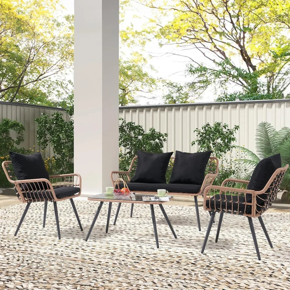 Meet the Verano Garden 4 Pieces Patio Furniture Set: all the style and durability you want for your outdoor space, at a price that makes sense. This thoughtfully designed set combines modern Boho flair with practical features, making it a smart choice for anyone seeking comfort, quality, and lasting value without overspending.