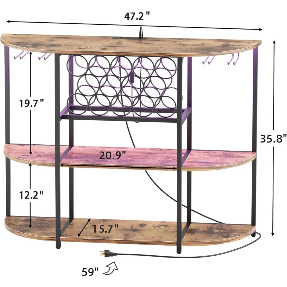 Meet the Wine Bar Cabinet with LED Lights and Power Outlets: all the style, convenience, and sturdy design you want in a wine cabinet, at a price that respects your budget. This freestanding liquor bar cabinet table is thoughtfully crafted to bring both function and atmosphere to your home entertaining space.