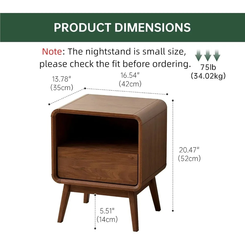 FurnitureZ l Walnut Mid-Century Solid Wood Nightstand Table For Living Room, Bedroom