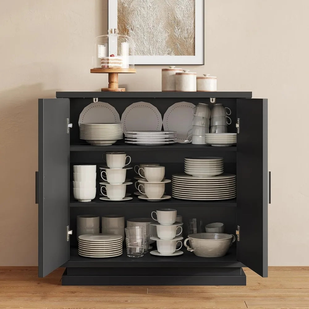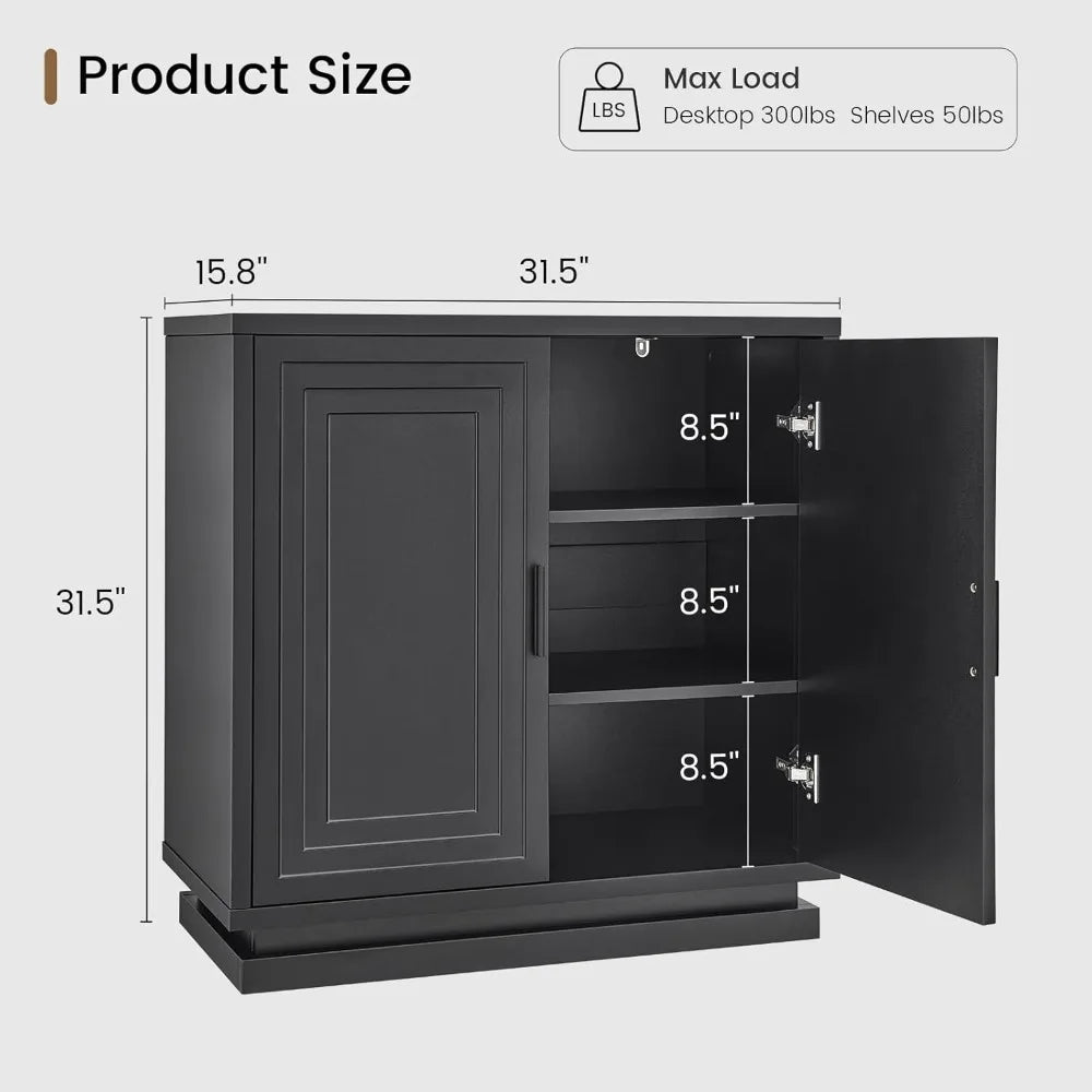 Measuring 15.8" deep by 31.5" wide and 31.5" high, this sideboard offers generous storage without overwhelming your space. Inside, you’ll find three spacious shelves that are perfect for organizing dishes, glassware, or kitchen essentials. Whether you’re setting up a coffee bar or need extra room for serving utensils and tableware, this buffet cabinet keeps everything neatly within reach.