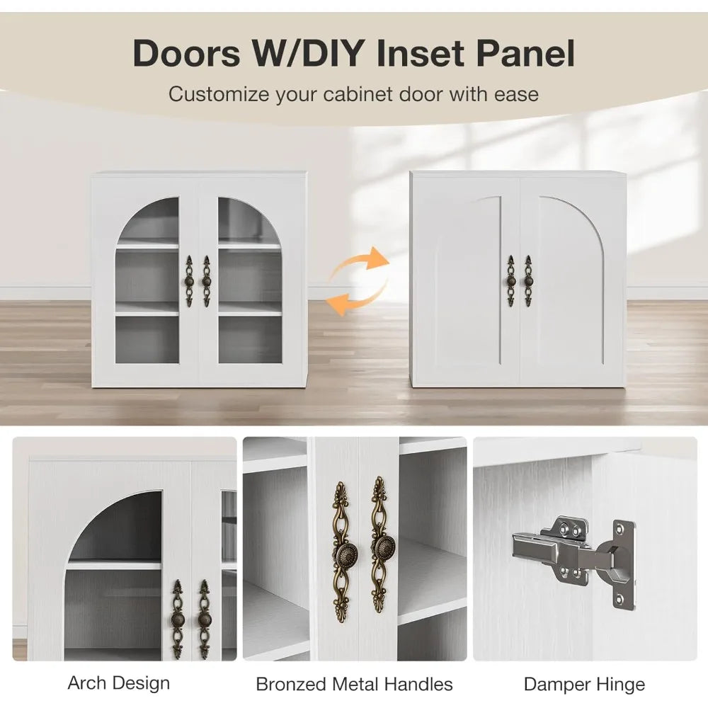 The cabinet also features replaceable door panels, giving you the option to switch between glass and wooden panels depending on your style and functional needs. Glass doors let you showcase your favorite tableware or décor, while wooden doors provide a more discreet storage option for items you prefer to keep out of sight. This thoughtful detail adds to the cabinet’s versatility and helps you maintain a clean, cohesive look in your kitchen.
